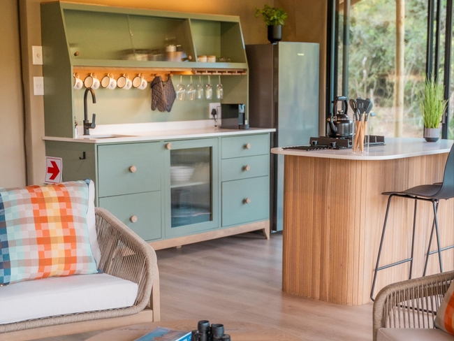 Enjoy a braai on our spacious wooden decks and take in the views from the comfortable deck loungers. Pull up the front covers and transform the tent into a large outdoor living area. Unwind and appreciate a festive family breakfast while taking in the serene natural beauty of the South African landscape.