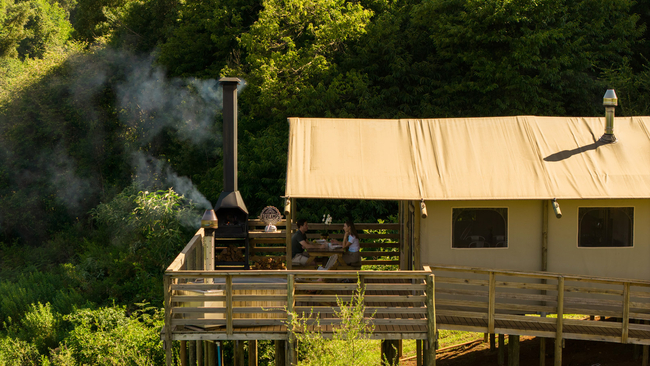 Enjoy a braai on our spacious wooden decks and take in the views from the comfortable deck loungers. Pull up the front covers and transform the tent into a large outdoor living area. Enjoy the outdoor wood-fired hot tub or splash pool.