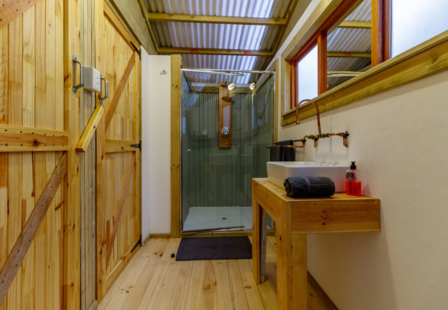 Each AfriCamps tent consists of an outdoor wood-fired hot tub or splash pool which overlooks the dam, a spacious open plan lounge area with a couch, a dining area with solid wooden table and seating for five guests, a fully-equipped kitchen with a four burner hob, two bedrooms which comfortably sleeps five guests and a bathroom complete with hot shower, flushing toilet and washbasin.