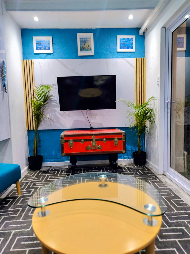 Guests have access to a spacious shared entertainment area, centred around an inviting fireplace that creates a warm and sociable atmosphere. On warm days, the swimming pool offers welcome relief from the sun, although it remains closed during the winter season.