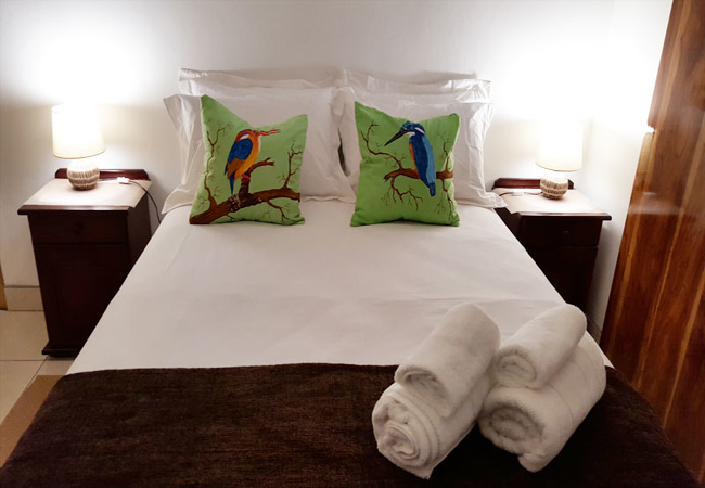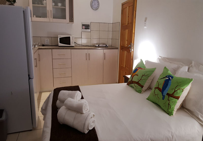 This room is perfect for a couple as it have an open living area, a bedroom which is equipped with a double bed and a bathroom that has a shower, toilet and basin. The Pygmy Kingfisher also has a kitchenette that contains a fridge-freezer, a two-plate stove with a microwave, and ample built-in cupboards with crockery and cutlery.