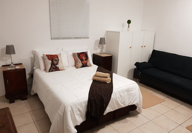 This cottage is suitable for a family as it sleeps up to 6 guests. The cottage has 2 bedroom a main bathroom and an open plan living area which is equipped with a double sleeper couch and a TV with selected DSTV channels. The kitchen is well equipped and has a fridge / freezer combination, a 2-plate stove, a microwave and lots of built-in cupboards filled with crockery and culery.