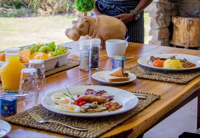 Book the African Safari Lodge as an entire unit on a full board basis or you can book the three rooms (Impala, Nyala and Kudu) individually on a B&B basis.
