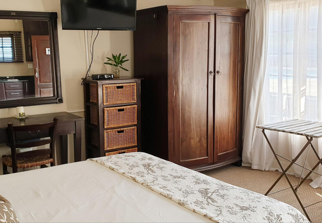 This room is perfect for a family of three and has a Queen-size bed and a single bed and a bathroom with a bath and shower. All rooms have air-conditioning and ceiling fans, a TV with DStv / satellite channels, Wi-Fi and tea / coffee making facilities.