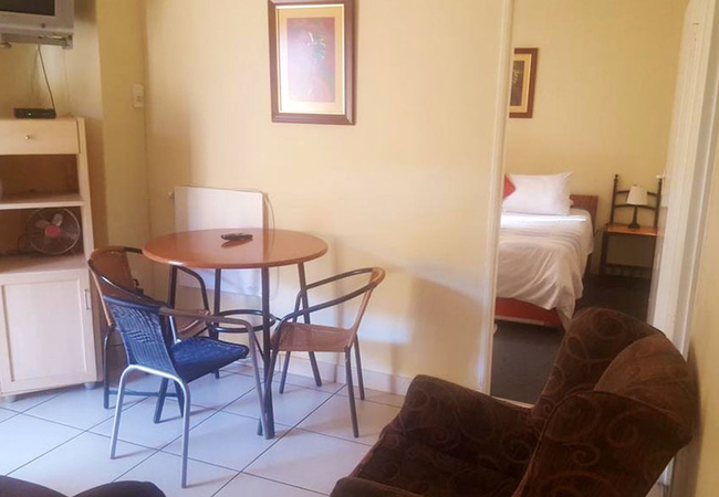 Ideal for trade workers or contractor groups working in the area. Unit has its own private entrance, two bedrooms, small lounge area and kitchenette, DSTV Hotel package, Wi-Fi Internet access, daily cleaning.