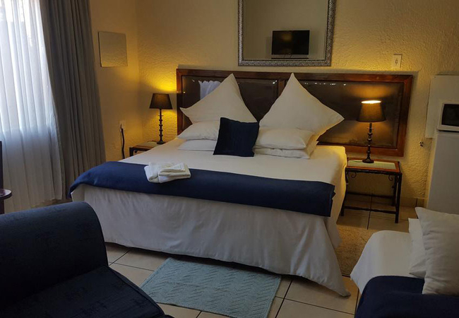 The Luxury double bed room is en-suite and can accommodate two guests. Spacious room comes with a King-size bed, en-suite bathroom and tea/coffee making facilities, with a bar fridge and microwave as well as a flat screen TV with DStv and free Wi-Fi. Own private entrance and daily cleaning services.