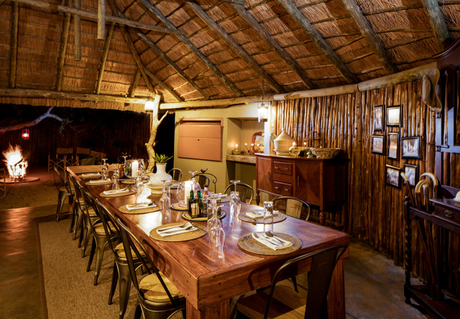 The camp facilities include a main area which houses a comfortable lounge area with two sitting areas and a library. The dining room has a large table where, as per safari tradition, everyone dines together to enjoy each other's company and share stories of the day's game sightings.