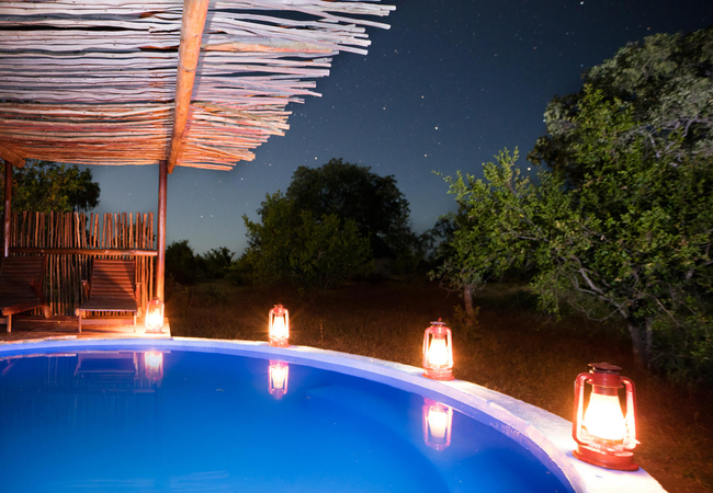 There is also a boma area with camp fire, perfect for warming you up with your coffee before the morning walk, or for enjoying evening drinks around the fire. In addition guests will experience a traditional South African braaivleis cooked over the open fire. The Greater Kruger area can get very hot in summer and thankfully the camp has a beautiful pool with decking area where guests can relax and siesta during the midday heat between game activities.