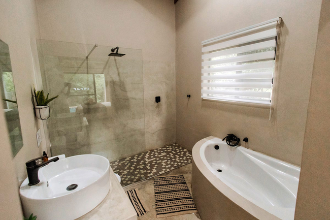 The villa includes three tastefully furnished bedrooms and three bathrooms, with the added convenience of a double sleeper couch in the lounge that can comfortably accommodate two children. The main bedroom is appointed with a queen-size bed and a baby cot, and has an en-suite bathroom fitted with a bath, shower, toilet, and basin. The second and third bedrooms are also furnished with queen-size beds, each complemented by its own en-suite bathroom with a shower, toilet, and basin.