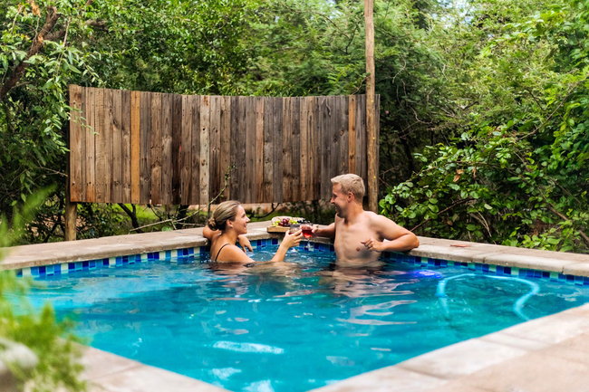Outdoors, guests can cool off in their private swimming pool or enjoy evenings in the entertainment area, complete with braai facilities and comfortable seating. Dining beneath the starlit African sky while listening to the sounds of the bush adds to the charm of the experience.