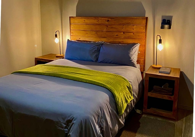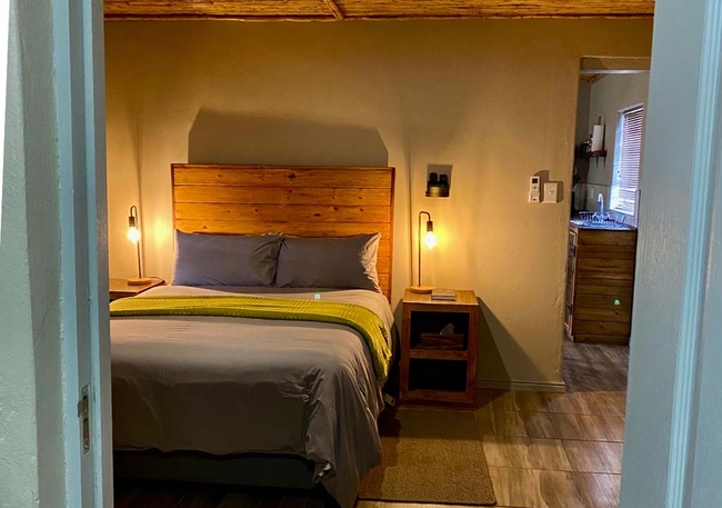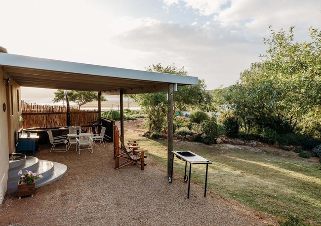The Albatross Cottage is a self catering holiday cottage sleeping two guests in one bedroom. The bedroom is furnished with a double bed and the bathroom has a shower. There is an open plan living area with seating, a dining table and a kitchen with a fireplace. The kitchen has a fridge / freezer, counter top oven, two plate stove, crockery, cutlery etc. Relax in your own private wood-fired Kol-Kol hot tub, soaking in the steaming water on a chilly evening. Add a crackling fire, an endless starry sky and a glass of wine. From the front stoep with veranda and braai you have a beautiful view over the vineyards,and the Langeberge. At your cottage there will be two mountain bikes for riding on the farm and one kayak for fishing or canoeing on dam 200m away.