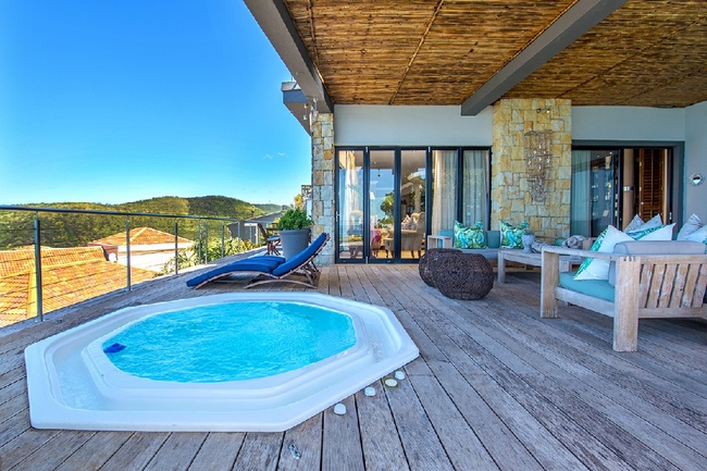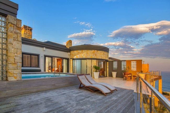 Situated on the top level, this suite offers a refined experience with a spacious lounge and a generously sized bedroom designed for absolute comfort. The bedroom includes a walk-in wardrobe and a full en-suite bathroom with both a bath and a separate shower. Modern conveniences such as Wi-Fi and a television with DStv are provided, along with air conditioning and a fireplace to ensure comfort in every season. The suite opens onto a private deck with a Jacuzzi, outdoor furniture, and a dining area, all overlooking breathtaking ocean views. Thoughtful touches such as a minibar, tea and coffee facilities, a safe, and turn-down service add to the sense of luxury. For added convenience, guests will find a hairdryer, bathrobes, slippers, ironing facilities, and premium bathroom amenities. This elegant retreat is non-smoking and carefully designed to combine relaxation with style, offering everything needed for a memorable stay.