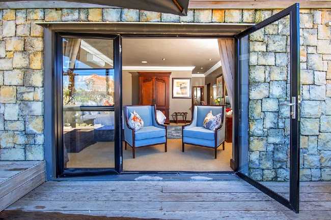 Located on the top level, this spacious suite combines elegance with comfort. It features a full en-suite bathroom with both a bath and separate shower, as well as an inter-leading fireplace that creates a warm and inviting atmosphere. Guests can stay connected with complimentary Wi-Fi and enjoy a variety of entertainment options on the television, which includes DStv and Netflix. The suite opens onto a large private patio furnished with outdoor seating and a plunge pool, where guests can take in sweeping views of the sea and surrounding mountains. Additional amenities include air conditioning, a safe, minibar, refrigerator, tea and coffee facilities, and a convenient desk and sitting area. For added comfort, the suite provides turn-down service along with thoughtful details such as bathrobes, slippers, premium bathroom amenities, a hairdryer, and ironing facilities. Designed as a non-smoking space, this retreat offers both luxury and tranquility in equal measure.
