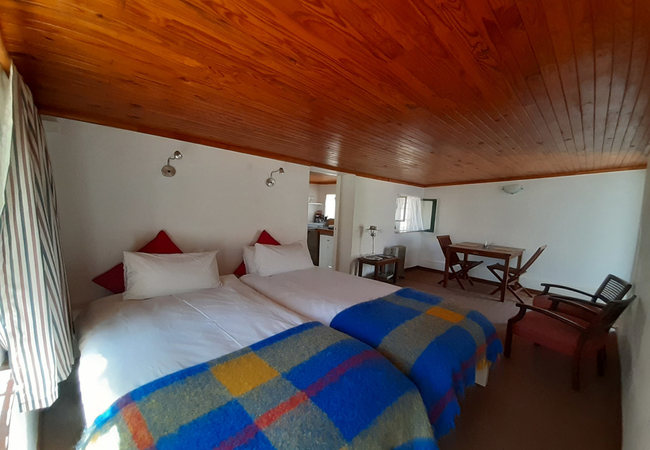 Allemann se Huisie is a self catering garden cottage sleeping two guests comfortably. The bedroom has twin beds with quality linen and mohair blankets for extra warmth on chilly evenings.