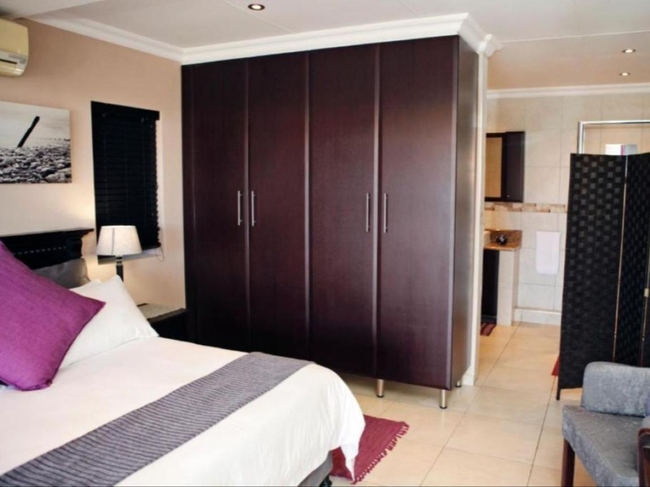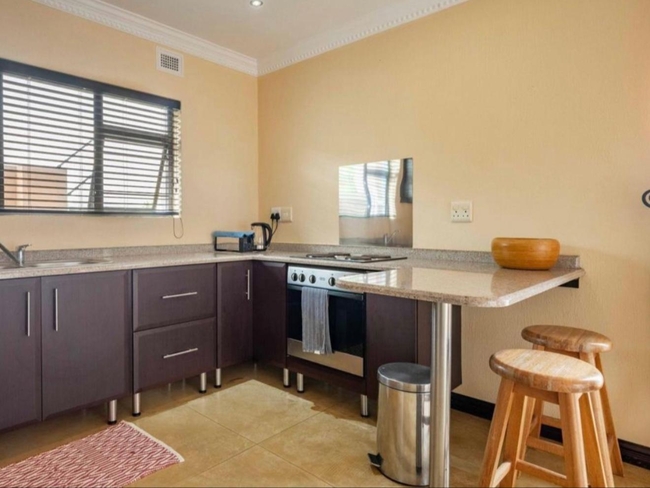 The Self-Catering Queen Room is a deluxe open-plan space featuring a queen bed and an en-suite shower, designed for comfort and convenience. It includes air conditioning, free Wi-Fi, a smart TV with DStv and streaming options, a sitting area, a desk, and coffee and tea facilities. The fully equipped kitchen offers a stove, oven, refrigerator, microwave, toaster, and minibar, making it ideal for longer stays. Guests also have access to bathroom amenities such as towels and a hairdryer. This non-smoking room provides outdoor furniture and a patio, along with regular cleaning service to ensure a pleasant and relaxing stay.