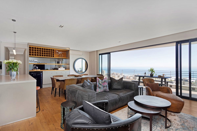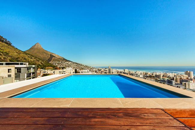 Alpha One 601 is an exquisite penthouse apartment located at the foot of Signal Hill, where sweeping views of the ocean and golden sunsets over Sea Point create a remarkable backdrop. Designed with contemporary sophistication, the apartment offers an inviting retreat perfectly suited for group escapes. Guests have the privilege of a private rooftop entertainment deck, complete with a swimming pool and panoramic vistas that are second to none.