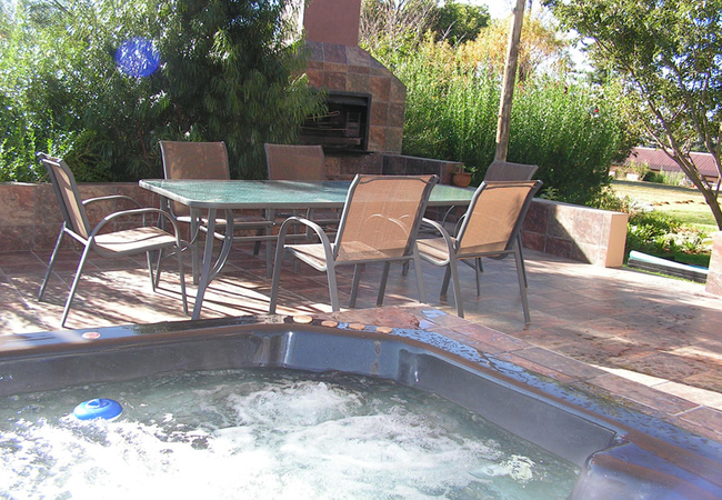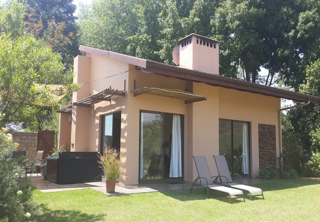 Sunbird Cottage features three bedrooms, two with Queen-size beds and one with twin beds. Each room has an en suite bathroom with a bath, shower, toilet and two vanities. All rooms open out onto the magnificent mountain view. The spacious lounge has a large TV with DStv /satellite channels, DVD and patio with charcoal braai area and jacuzzi, share some fantastic views. For those chilly winter evenings there is a wood burning fireplace and under floor heating throughout. There is a fully equipped kitchen including dishwasher. Outside there is a secluded garden courtyard off the kitchen with a water feature and a double carport. There is a swimming pool and fishing dam on site.