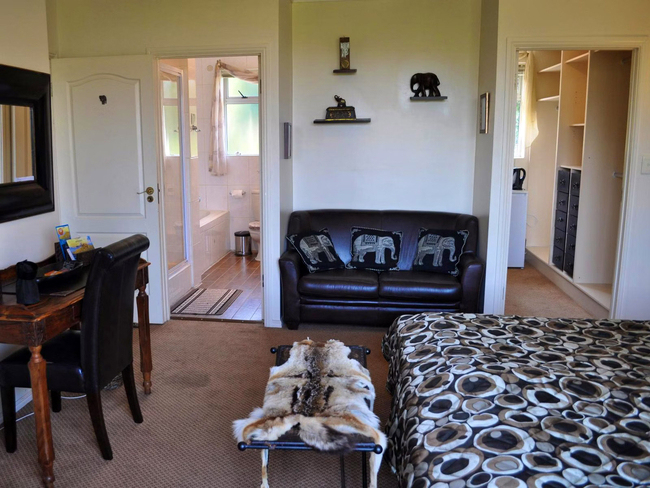 Located on the first floor, the Leopard Suite offers a beautiful view of the mountains and a peaceful escape from the everyday. The suite is furnished with a luxurious king-size bed, which can be converted into twin beds if preferred, and features a private bathroom with both a separate bathtub and a shower. Guests can enjoy a comfortable sitting area, air conditioning, a flat-screen TV, and complimentary Wi-Fi. The suite is non-smoking and equipped with a personal safe for added peace of mind. Additional conveniences include a full kitchen, coffee and tea-making facilities, and a hairdryer.