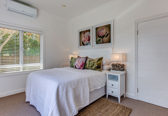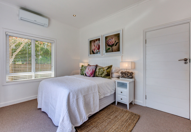 The Protea Suite is a 19 sqm first-floor deluxe garden suite has access to the deck and landscaped garden. The air-conditioned suite has a queen sized bed, 40 inch smart flat screen television and separate en suite luxury appointed bathroom with shower facilities (regret no bath). Guests enjoy a choice of pillows and service on demand. As with all suites the room has luxury five star amenities, bar fridge, lounge chair, writing desk cupboard and storage and free wifi.
