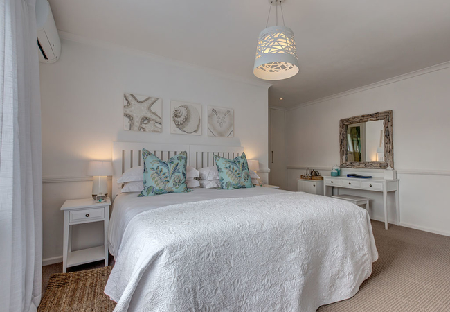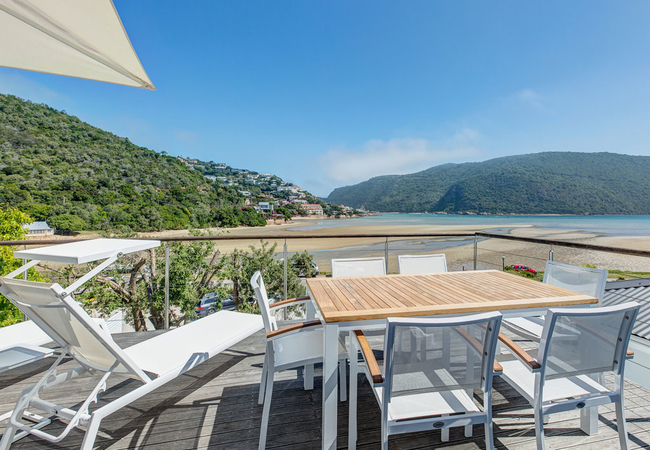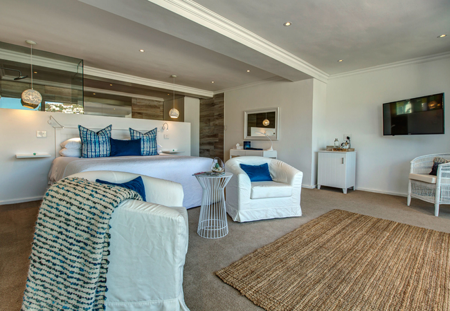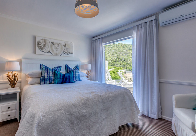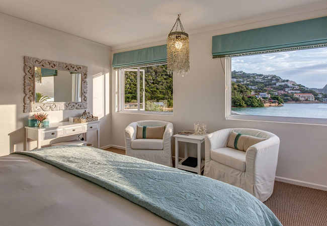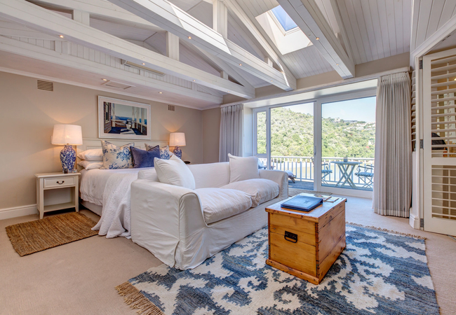 The Starfish Suite is a superior room and one of the best rooms with the best views in the house. The spacious room has its own magic and offers guests spectacular views of the lagoon and the Knysna Heads. The rooms open out onto a private balcony. The private deck is equipped with two sun loungers, chairs and table.The Starfish room opens onto a deck in the front garden. The beds in the Superior rooms are luxurious extra long King beds, and the bathrooms have a bath, double shower and double basins. Special touches make for additional pampering. Air-conditioned. Perfect for honeymoons, wedding anniversaries and those who'd just like to treat themselves. As with all suites the room has luxury five star amenities, bar fridge, lounge chair, writing desk, cupboard and storage and free wifi.