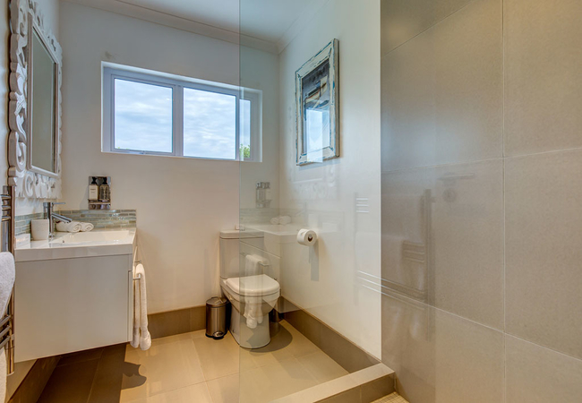 The Whale Suite is a standard lagoon facing rooms. This comfortable room on the ground floor opens out onto a deck in the front garden. The private deck is equipped with two sun loungers, chairs and table. The room looks out onto the lagoon and the Knysna heads. The en-suite bathroom has a shower, and the beds can be made up as King or Twins with an optional extra bed for a third person. Air-conditioned. As with all suites the room has luxury five star amenities, bar fridge, lounge chair, writing desk, cupboard and storage and free wifi.