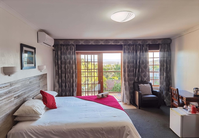 Hill View is a spacious and tranquil retreat located outside the main house, ideal for a calm and comfortable stay. The room features a king bed that can be split into twins, offering flexibility for different sleeping arrangements. Guests can unwind on the sheltered deck while enjoying distant hill views and local birdlife. With a large bathroom and generous living space, Hill View provides a peaceful setting for relaxation. Amenities include Wi-Fi, a TV with DSTV/Satellite channels, a desk, daily cleaning service, and bathroom amenities with a shower only. Additional conveniences include an iron and ironing board, coffee and tea facilities, a refrigerator, and a patio. The unit is non-smoking, ensuring a fresh and serene environment.