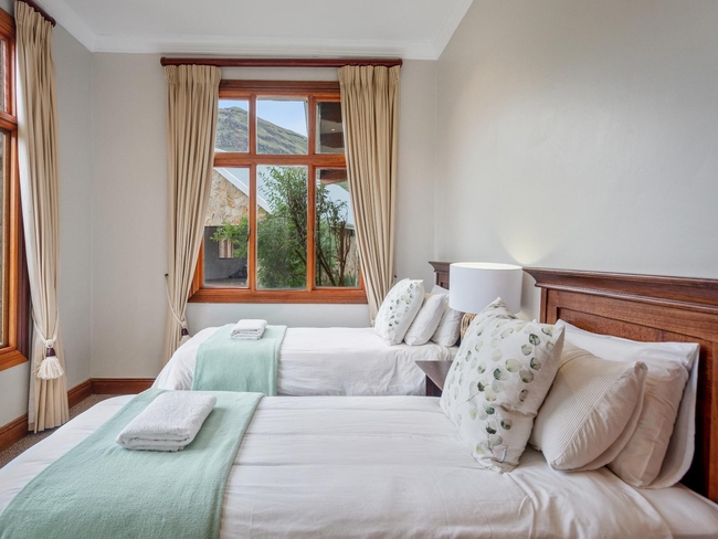 The second bedroom is furnished with a queen-size bed and has an en suite bathroom with a combined bath and shower. The third bedroom contains two single beds with an en suite bathroom that includes a bath, while the fourth bedroom also offers two single beds. Quality linen and bath towels are supplied for all guests.