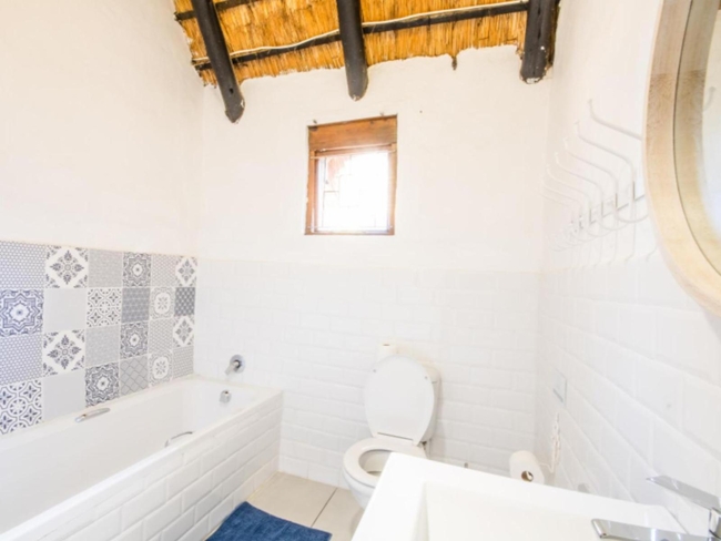 A wide wrap-around verandah encircles the lodge, offering multiple seating areas. The built-in braai area features a dining table and benches, while an inviting outdoor lounge opens onto a large, level, lawned garden. Carefully positioned seating areas take full advantage of the scenery, from the breathtaking sunrise over Castle End to the commanding view of Rhino Peak from the master bedroom.