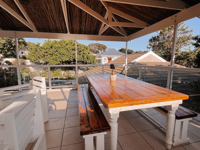 Guests are welcome to unwind in the shared cocktail pool—perfect for a refreshing dip on warm days—or relax in the spacious outdoor lounging area. The built-in braai facilities create an ideal space for easy entertaining and enjoying laid-back evenings in the company of friends and family.