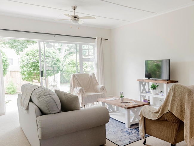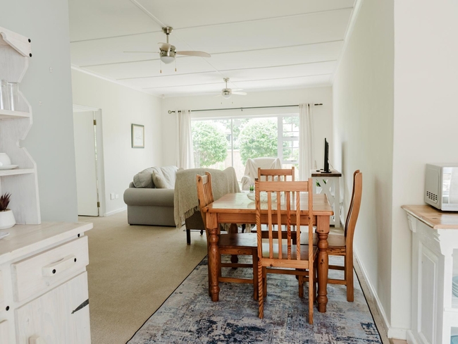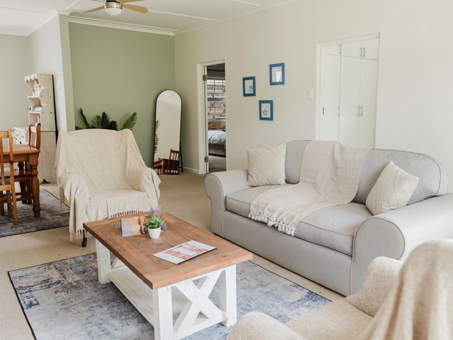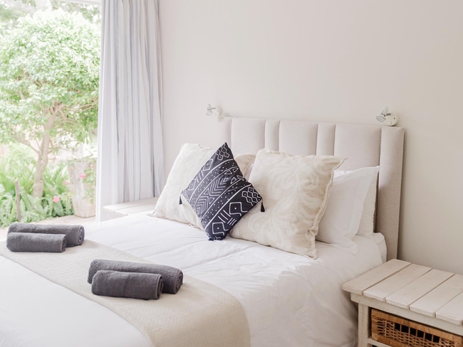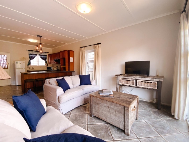 This cosy apartment comfortably accommodates up to five guests in three bedrooms, offering a combination of one double bed and single beds. Designed with comfort and convenience in mind, the space features an open-plan layout that includes a fully equipped kitchen and a bathroom fitted with a shower. Ideal for families or small groups seeking a relaxed getaway, the apartment is both functional and inviting. Guests can enjoy modern comforts such as complimentary Wi-Fi, a TV with Netflix, and a ceiling fan to keep the air fresh. The sitting area provides a comfortable spot to unwind, while additional amenities include a personal safe, iron and ironing board, and tea and coffee-making facilities. The kitchen is fully stocked with a refrigerator, microwave, oven, toaster, and dishwasher, making self-catering effortless. For outdoor enjoyment, the apartment includes access to a plunge pool and braai (barbecue) facilities. This non-smoking unit ensures a clean, welcoming environment for a memorable stay.