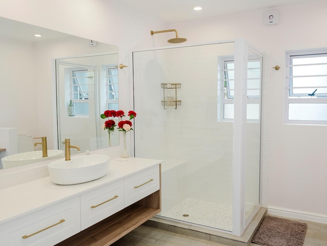 This stylish apartment comfortably sleeps up to four guests across two bedrooms, offering one double bed and two single beds. Each bedroom features its own en-suite bathroom with a shower, ensuring added privacy and convenience. The open-plan living area is bright and inviting, seamlessly connected to a fully equipped kitchen, perfect for a relaxed and hassle-free stay. Guests can enjoy a range of modern amenities, including complimentary Wi-Fi, a TV with Netflix, a ceiling fan, and a comfortable sitting area. Practical additions such as an iron, ironing board, and tea and coffee-making facilities ensure a well-rounded experience. The kitchen includes everything needed for self-catering, with a refrigerator, microwave, oven, toaster, and ample workspace. Outdoors, the apartment offers a private plunge pool, an outdoor dining area, comfortable furniture, and braai (barbecue) facilities, ideal for relaxed afternoons and al fresco meals. This non-smoking unit is designed to provide a restful retreat with all the essentials for a memorable getaway.