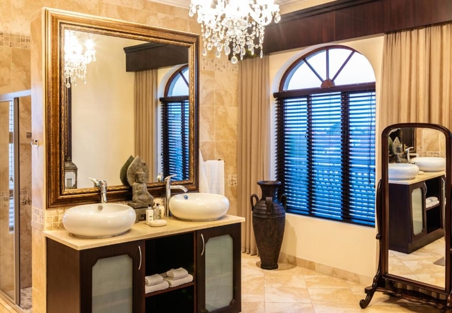 This spacious room with King-size bed and seating area, En-suite bathroom with bath and shower offers warmth. Air-conditioned, Flat screen TV with DStv, Tea and Coffee facilities. Full guest amenities and fully serviced daily.