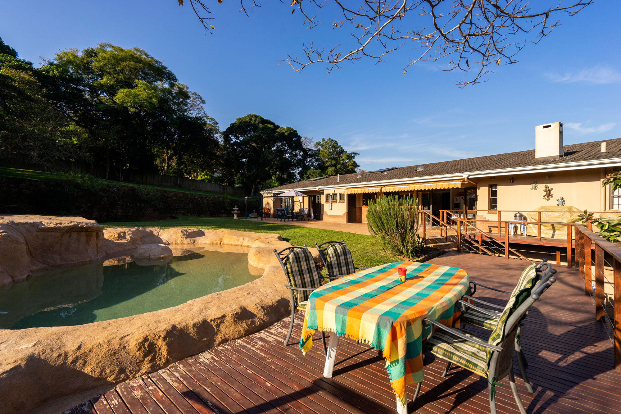 The Anchorage has FREE Wi-Fi and secure parking. Outside is a large patio with outdoor furniture which overlooks a well manicured garden and a beautiful swimming pool surrounded by rocks.