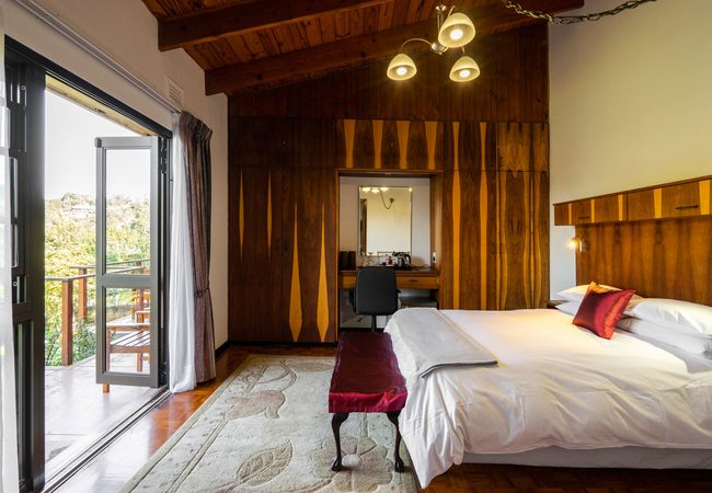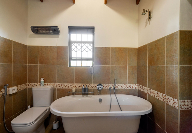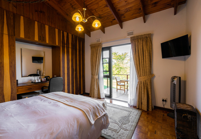 The Gold Room is furnished with a Queen-size bed and the en-suite bathroom is equipped with a bath, shower, toilet, basin and bidet. The unit has a a small seating area. The room is equipped with a TV with Netflix. If guests are DStv subscribers they can log into their accounts to access DStv. This room has its own entrance overlooking the garden, pool and the Krantzkloof Nature Reserve.