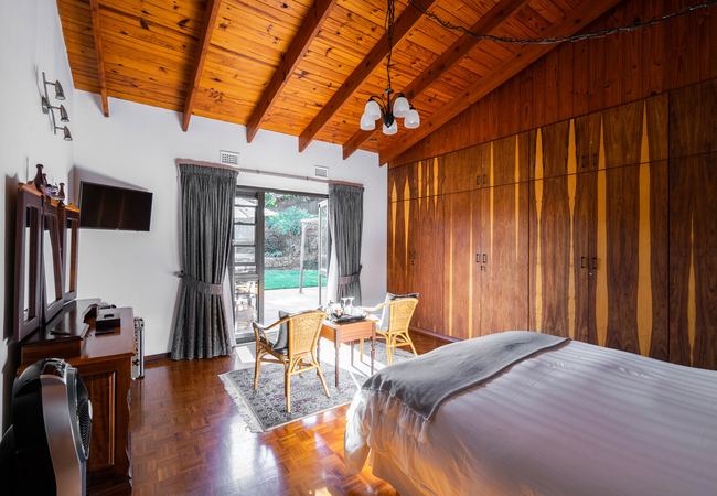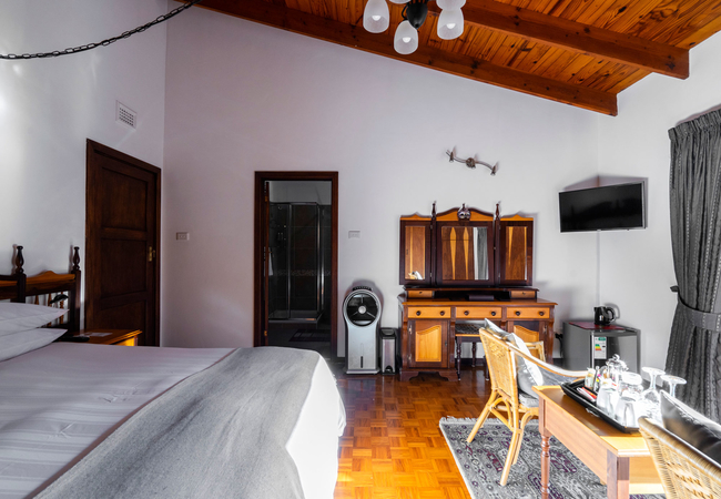 The Anchorage Krantzkloof has three B&B rooms, Red, White and Gold. Two of the rooms have double beds and the third room has a Queen-size bed. Each room has their own en-suite bathroom with a bath, shower, toilet and hand basin. Each room has a TV with Netflix and a tea / coffee tray. Outside the rooms are small balconies with a table and chairs.