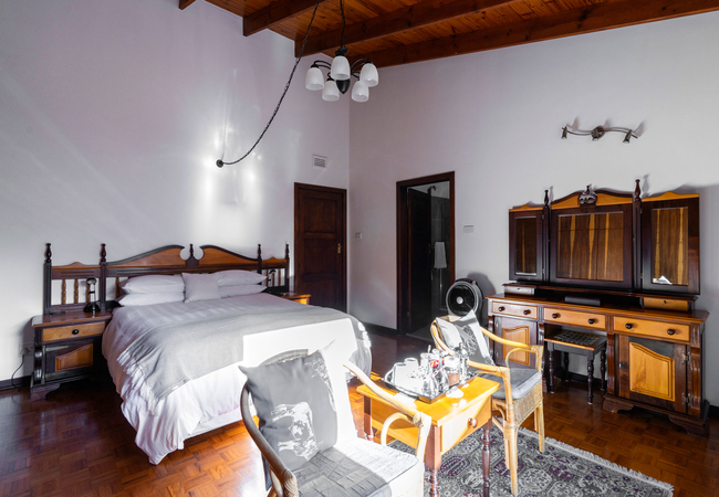 This room offers a comfortable Queen-size bed with an en-suite bathroom and a small sitting area inside.