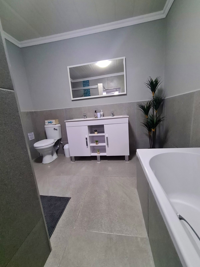 The house includes an open plan lounge and dining room with a 40" Flat screen TV with Netflix and access to DStv Now. The kitchen offers a fridge freezer, gas stove, electric oven, microwave and dishwasher. Starter packs of milk, tea and coffee are provided.