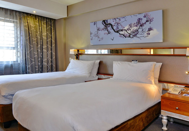 The Executive Room is furnished with a King-sized bed making it perfect for leisure and business travellers alike. The en-suite bathroom is equipped with a shower, toilet and hand basins. Indulge in a hot beverage from the in-room coffee and tea station, while you enjoy your favourite premium channels or in-room entertainment. Other facilities include air conditioner, hairdryer, electronic safe, tea and coffee making facilities, Complimentary Wi-Fi, flat screen TV and DStv.
