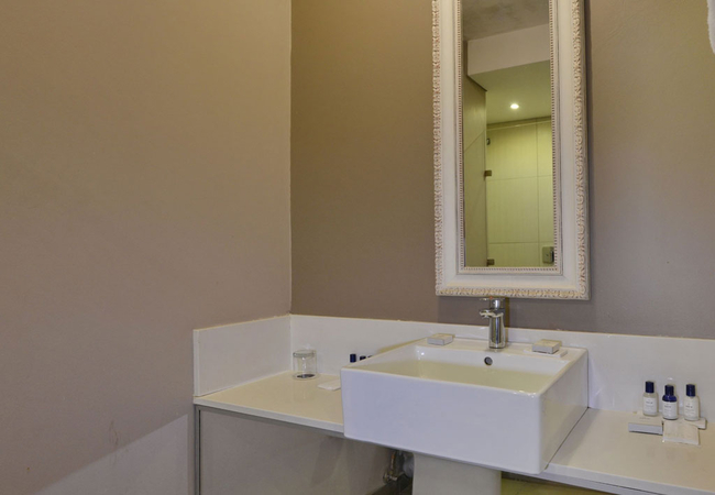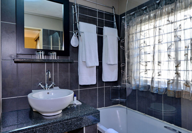 Our Two-bedroom self-catering apartments offers guests a detached living area separating the two bedrooms. The apartment consists of a kitchenette with a mini bar fridge, microwave and stove top. Both bedrooms are furnished with queen-size beds and the bathrooms are equipped with shower, bath, toilet and hand basins. The rooms are equipped with a flat-screen Television Set, individual controlled air conditioning, tea and coffee making facilities, electronic safe, hairdryer and telephone. Enjoy the complimentary amenities provided in these bathrooms which are shower-bath combinations. These rooms are accessible via the exterior corridor.
