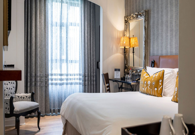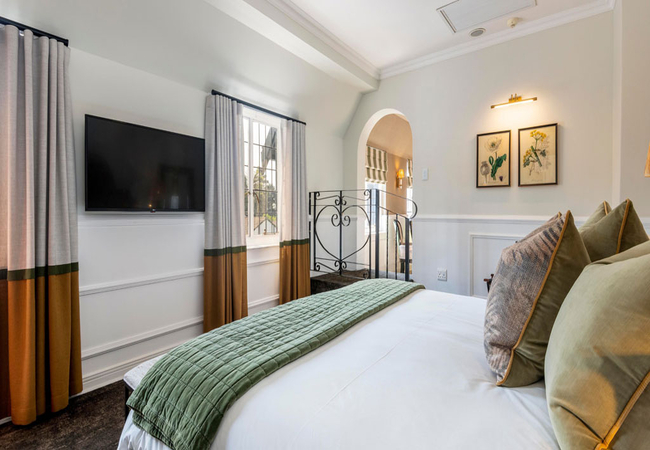 This spacious, wheelchair-friendly room has everything you need for a comfortable stay in Hilton. Enjoy a king-sized bed, a work desk, and a satellite TV. The room leads into a modern en-suite bathroom fitted with a large floor shower equipped with a chair and handlebars for easy use.