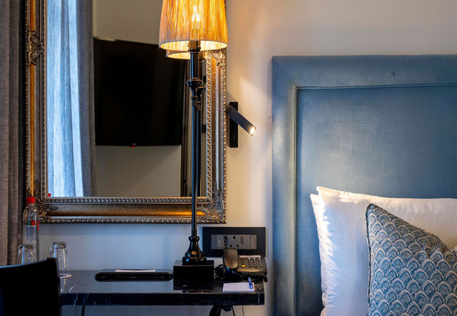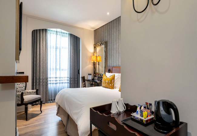 The Deluxe King Room is an air-conditioned room which has a King-size bed, a work desk, a satellite TV and en suite bathroom with shower, bath, toilet and basin. Room can be split into twinned singles if required (request this after confirming your booking please). Unwind with complimentary wireless internet and satellite television. Indulge in deep soaking bathtubs and rainfall shower-heads in your private bathroom.