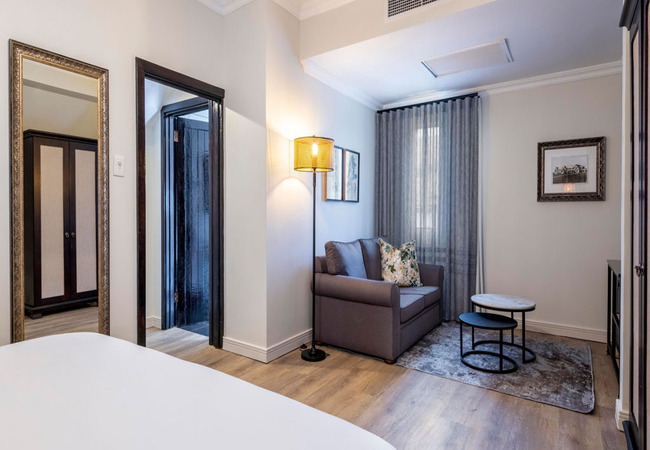 The Executive Suite is an air-conditioned room with a King-size bed, a work desk, two satellite TV's with a separate lounge and en suite bathroom with shower and a separated toilet. Unwind with complimentary wireless internet and satellite television. Indulge in deep soaking bathtubs and rainfall shower-heads in your private bathroom.