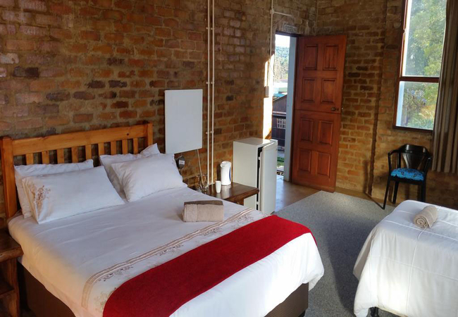 The Deluxe Queen Room is furnished with a Queen bed or twin beds and an en-suite bathroom equipped with a shower only. TV with DSTV, Mountain views, Garden views, Tea and Coffee Facilities, No Smoking in Room. All rooms have en-suite bathroom and contain tea and coffee facilities. There is safe parking on the premises and the lodge employs a 24 hour security policy.