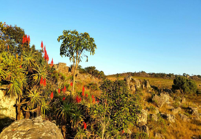 A walk through the sandstone natural art ‘gallery' will bring you to one of South Africa craters and in the far distance you can see Barberton at the foot of one of the craters walls.