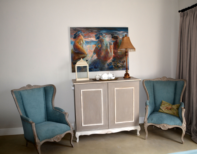 Decorated in an eclectic mix of French and contemporary aesthetics, the room offers a comfortable seating area, a queen size extra length bed, en-suite bathroom and a coffee/tea station with freshly ground coffee, rusks and a small fridge.