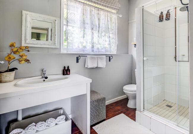Anna's Apartment in Hoekwil is a five -sleeper unit that has the option of an interleading room into the next door unit. The main bedroom is furnished with a double bed while the second bedroom is furnished with a single bed and bunk beds with ladders. Linen and towels are provided. The bathroom is fitted with a shower, toilet and basin. There is a well equipped kitchenette, a comfortable living area and a fireplace. Outside there is a patio with braai facilities and views out over the farm and mountains in the distance. You're also guaranteed a front row seat from your patio, as the Oakhurst herd passes by enroute to the dairy at milking time.