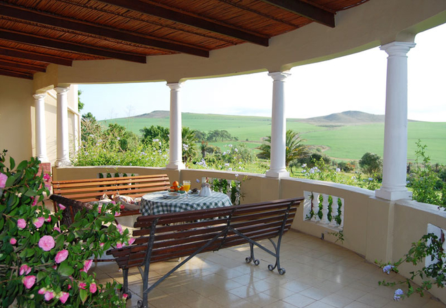 Enjoy traditional home-cooked meals in the family dining room in the company of your hosts. Sip a glass of good South-African wine at the fireplace or on the big verandah while watching the sweeping views of farmlands, birds, animals and the Langeberg Mountains, is farm life at its best.