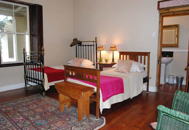 Bedroom with two single beds. Charming bedrooms with antiques, fresh flowers, tea tray and sherry (on the house) is a peaceful haven to return to after visiting places of interest in the vicinity. A perfect stay for a family or a group. Enjoy traditional home-cooked meals in the family dining room in the company of your hosts.