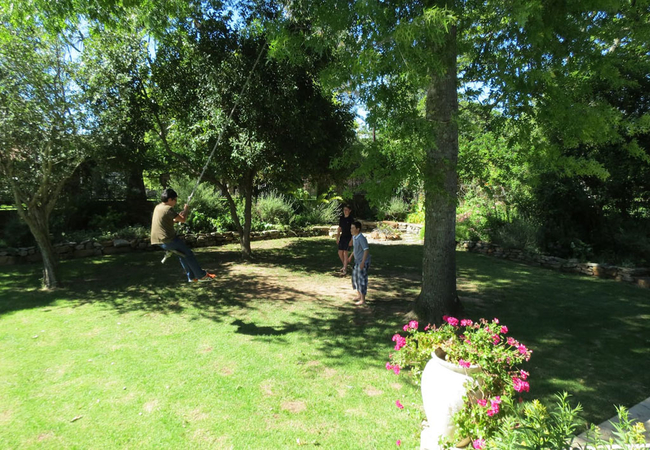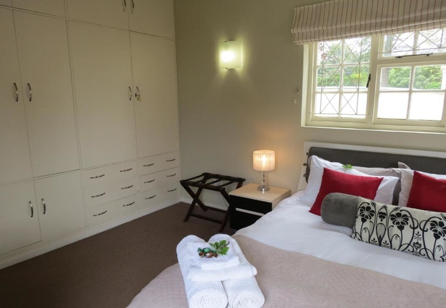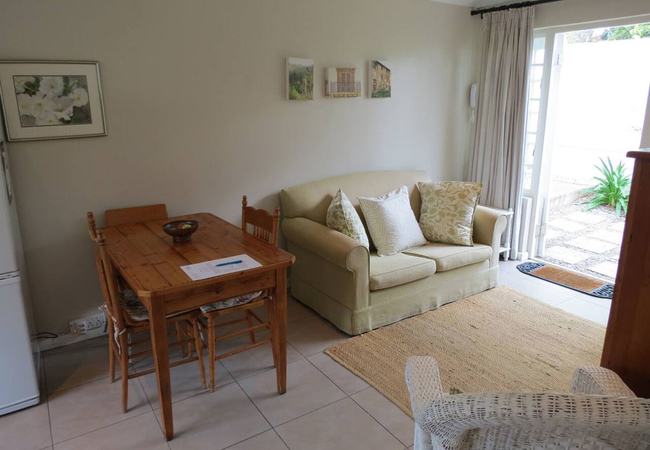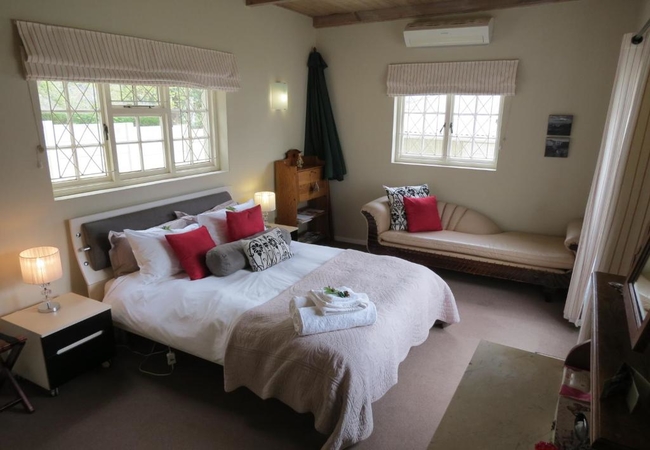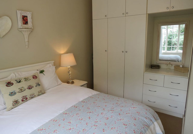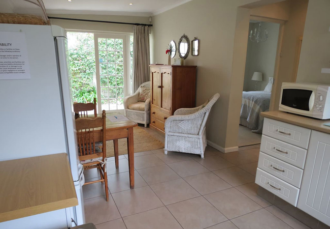 AppleBee I has its own private garden. The cottage has a separate bedroom with a queen bed and a full bathroom with shower and bath. There is a 2nd bedroom with twin beds (or a king bed) and a three quarter sleeper couch in the lounge. They share the same bathroom fitted with a bath, shower, toilet and basin. It is set up for self-catering with everything required, including a table to work at, gas/electric stove, full size fridge/freezer, microwave, fan, heater, electric blankets, etc.