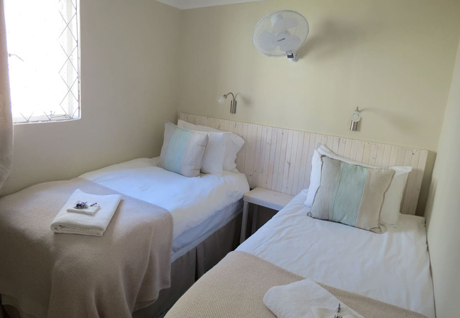 AppleBee II consists of large carpeted bedroom with air con an furnished with a king/twin beds and a bathroom fitted with a shower, toilet and basin There is a single bed in the lounge area and it is set up for semi-self-catering with everything required, including a table to work at, fridge, microwave, toaster, kettle, single induction plate with pots and pans, electric frying pan, fan and heater, electric blankets, etc.